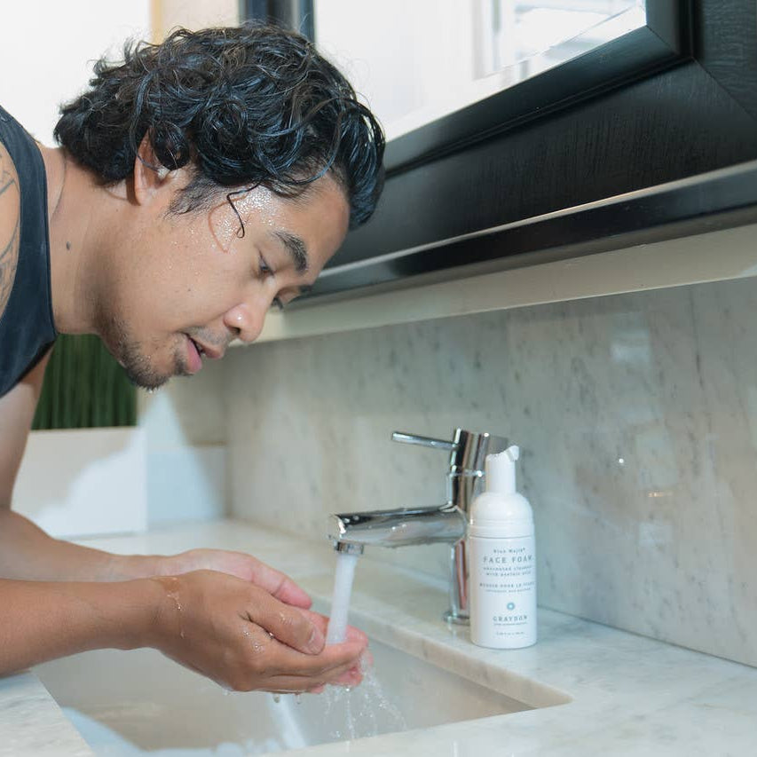 Simplify post-workout or midday refreshes with Guests on Earth Foaming Hand Soap used as a gentle face wash—which blends aloe, Dead Sea salt, and shea butter to cleanse and rebalance oily skin without over-drying.